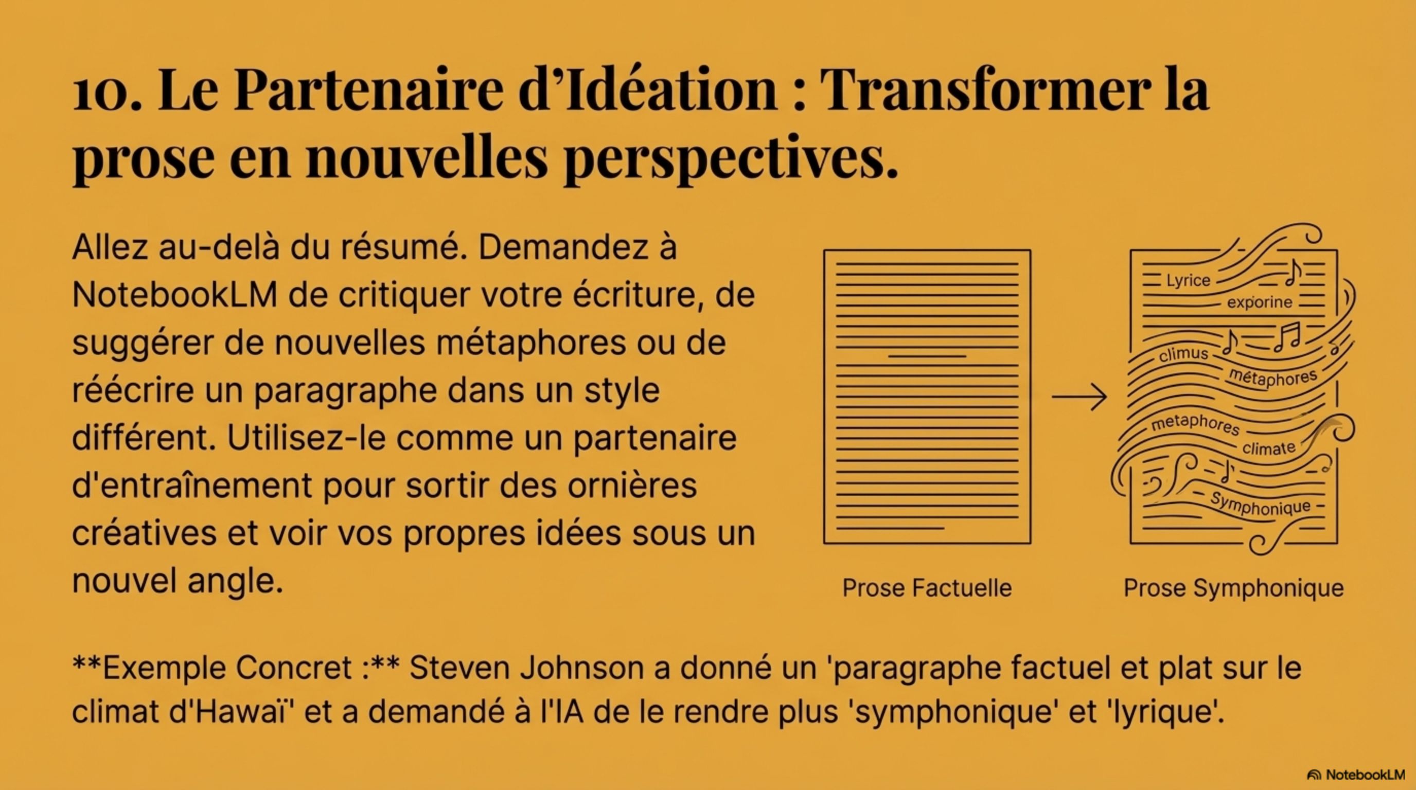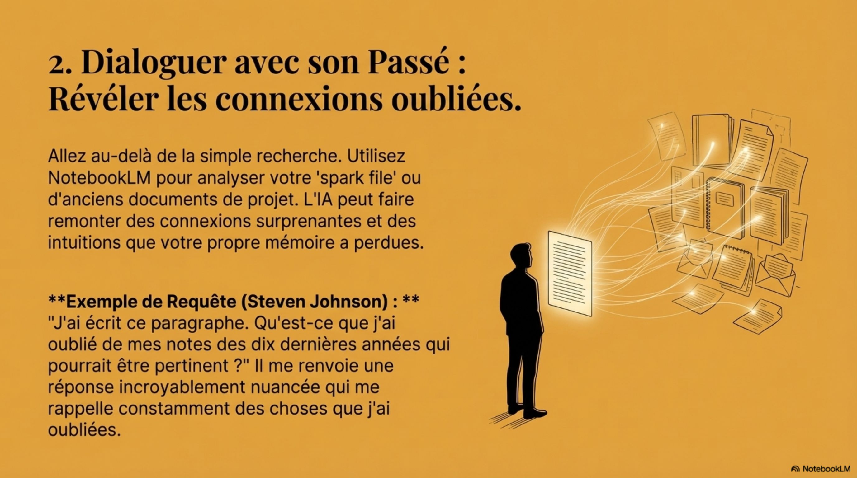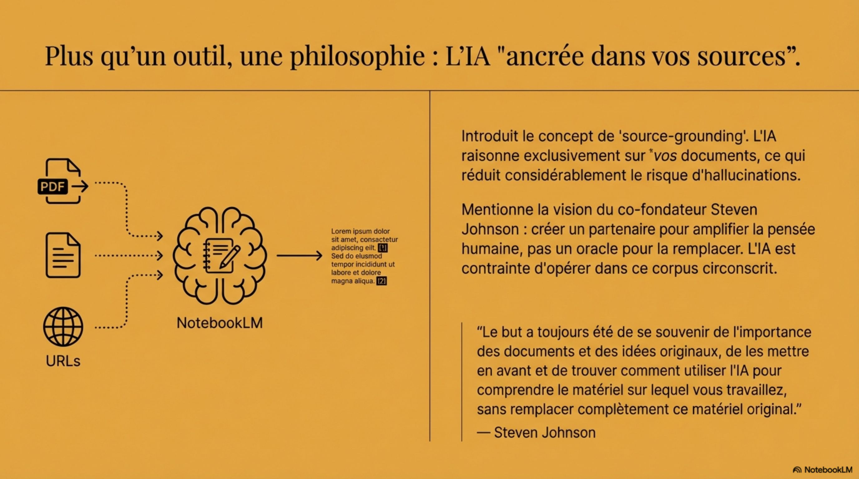 personnalisés, des quiz et des fiches de révision. NotebookLM devient un tuteur expert, ancré exclusivement dans votre matériel de cours.