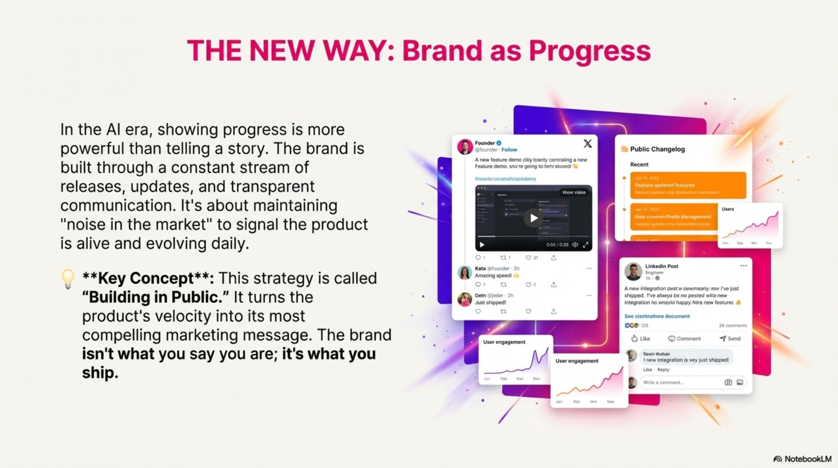 In the Al era, showing progress is more powerful than telling a story. The brand is built through a constant stream of releases, updates, and transparent communication. It's about maintaining "noise in the market" to signal the product is alive and evolving daily.