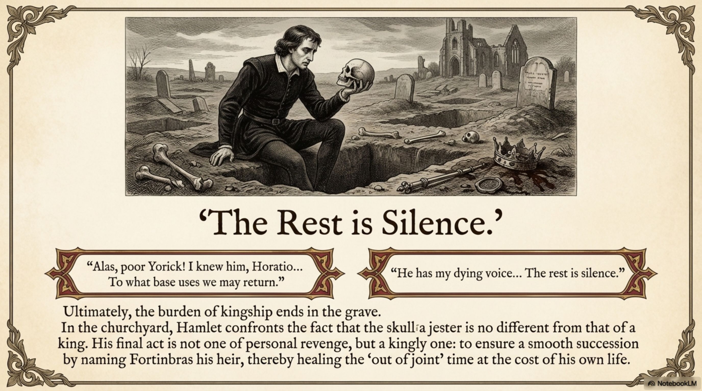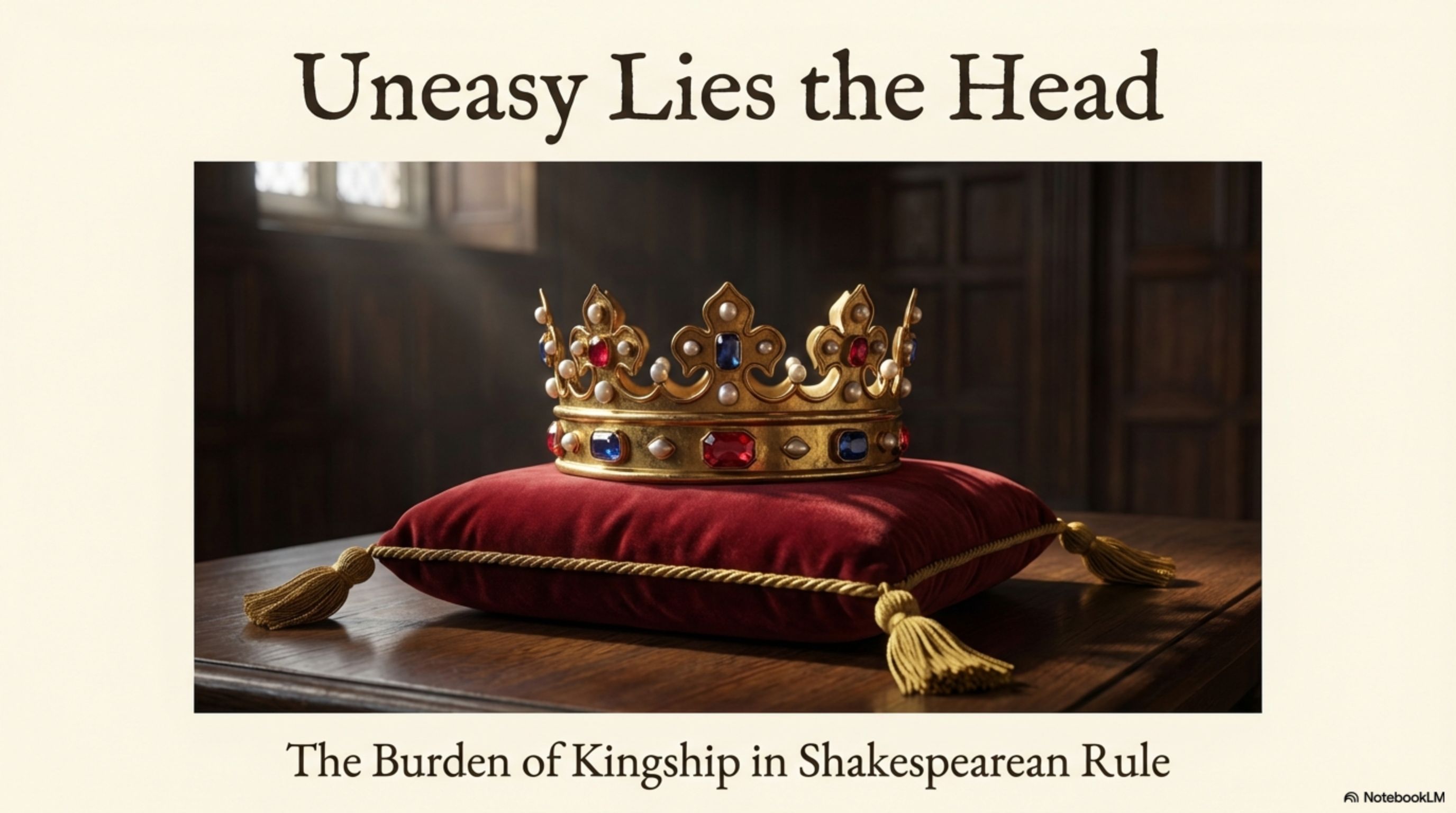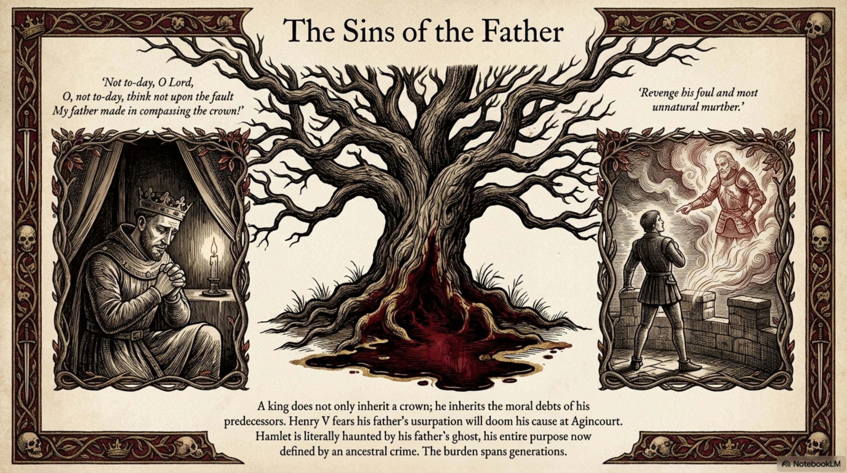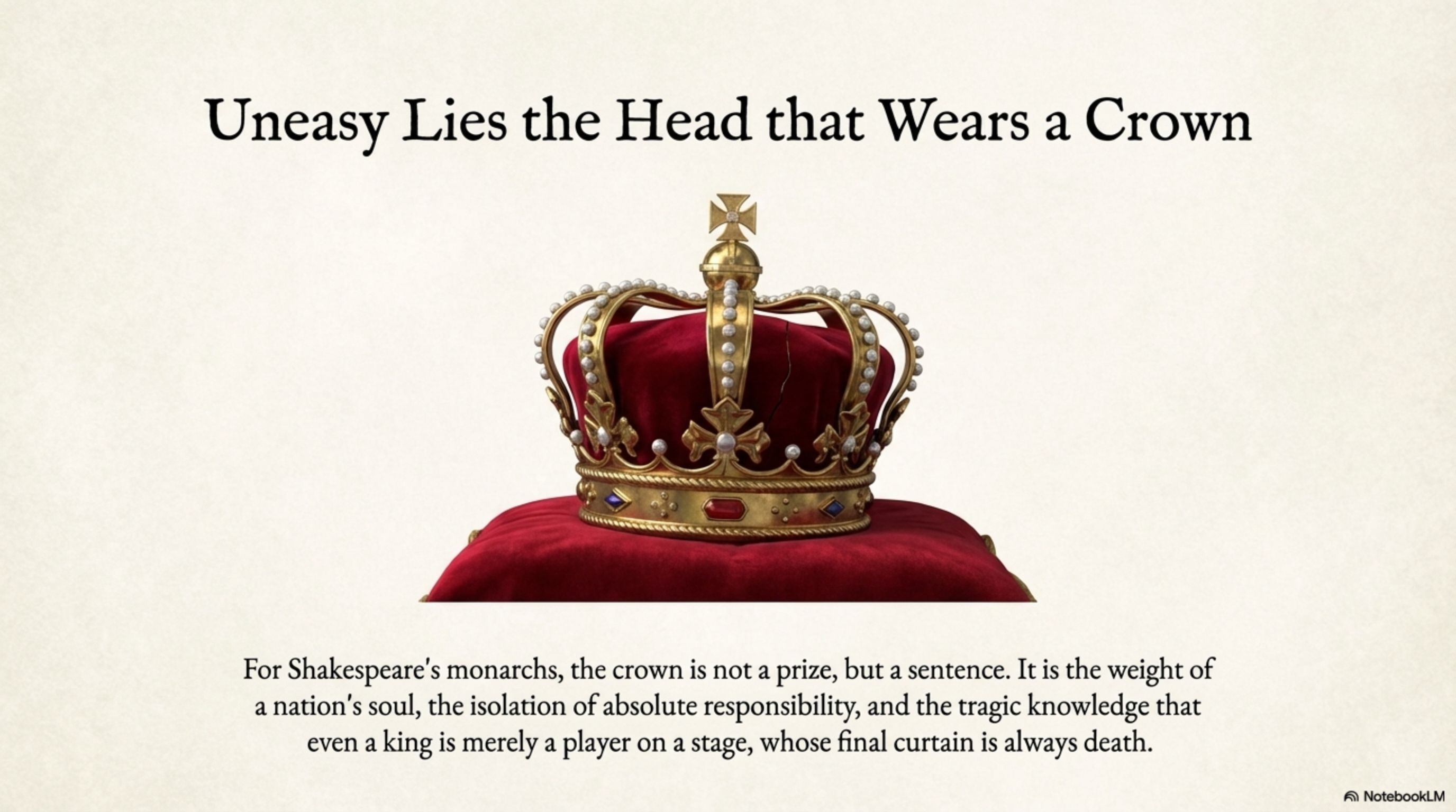 While Henry bears the external weight of his men, Hamlet is crushed by the internal burden of his own mind. Tasked with a king's duty of revenge, his intellectual nature becomes a prison. He is paralyzed by thought, and this inaction torments his soul, making the burden of kingship a source of profound self-loathing.