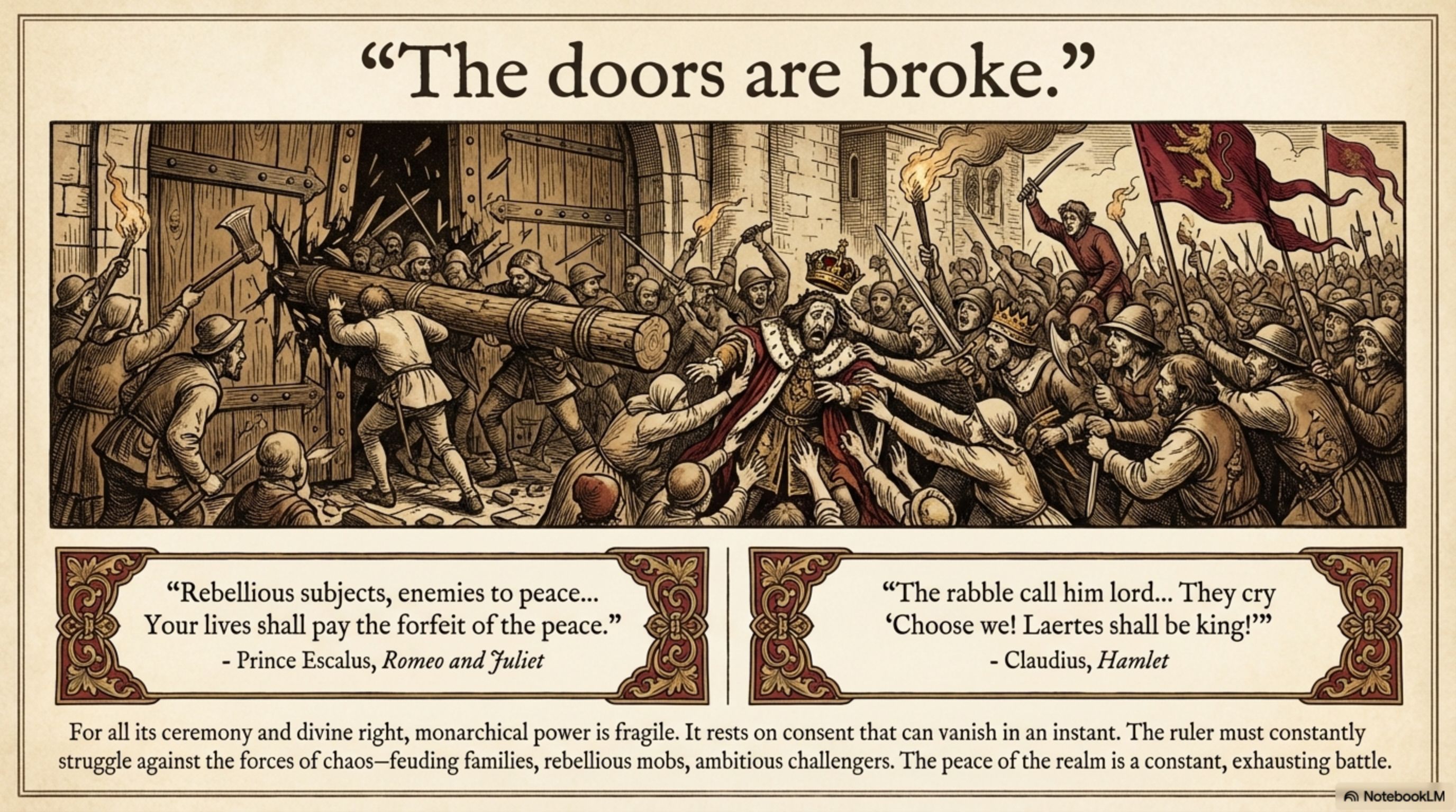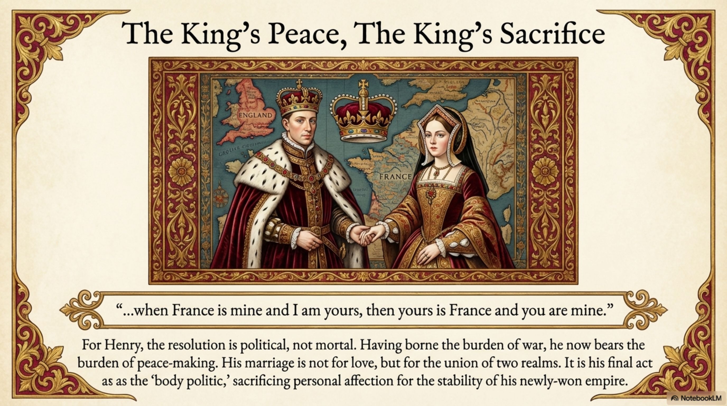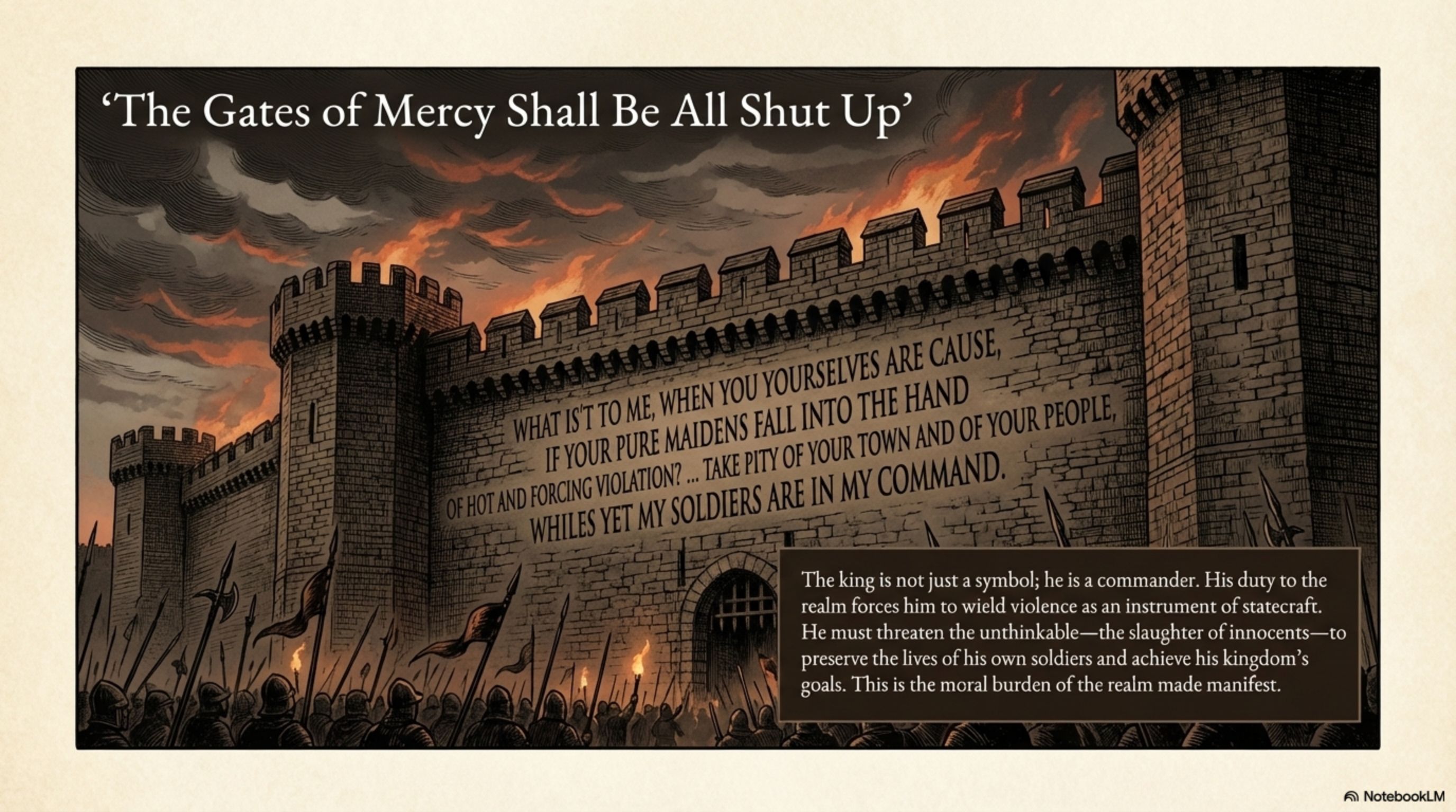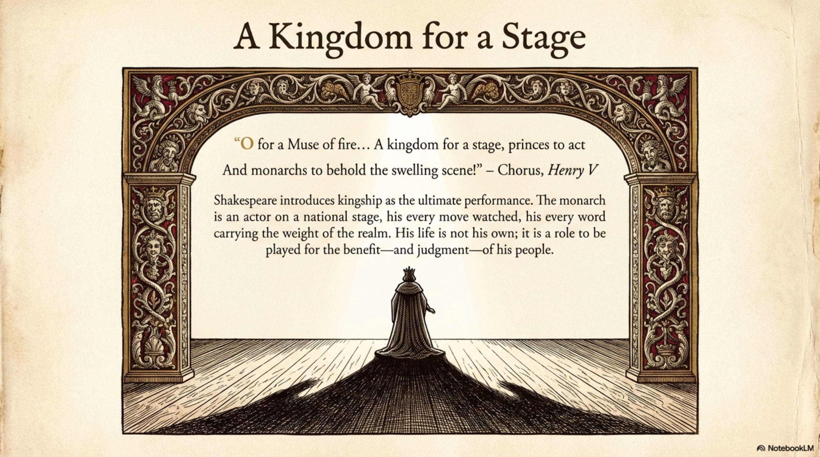 While Henry bears the external weight of his men, Hamlet is crushed by the internal burden of his own mind. Tasked with a king's duty of revenge, his intellectual nature becomes a prison. He is paralyzed by thought, and this inaction torments his soul, making the burden of kingship a source of profound self-loathing.