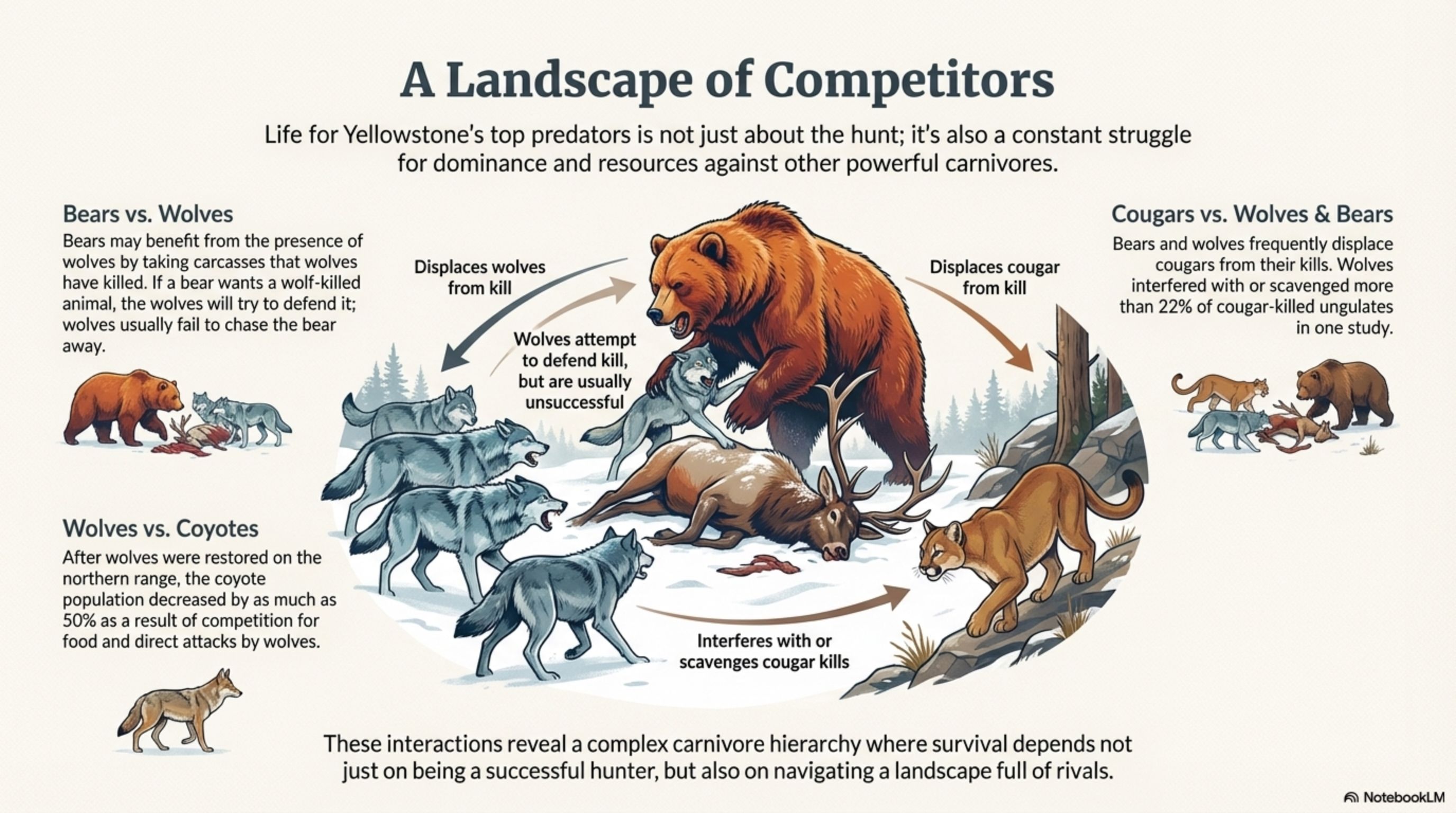 Life for Yellowstone's top predators is not just about the hunt; it's also a constant struggle for dominance and resources against other powerful carnivores.