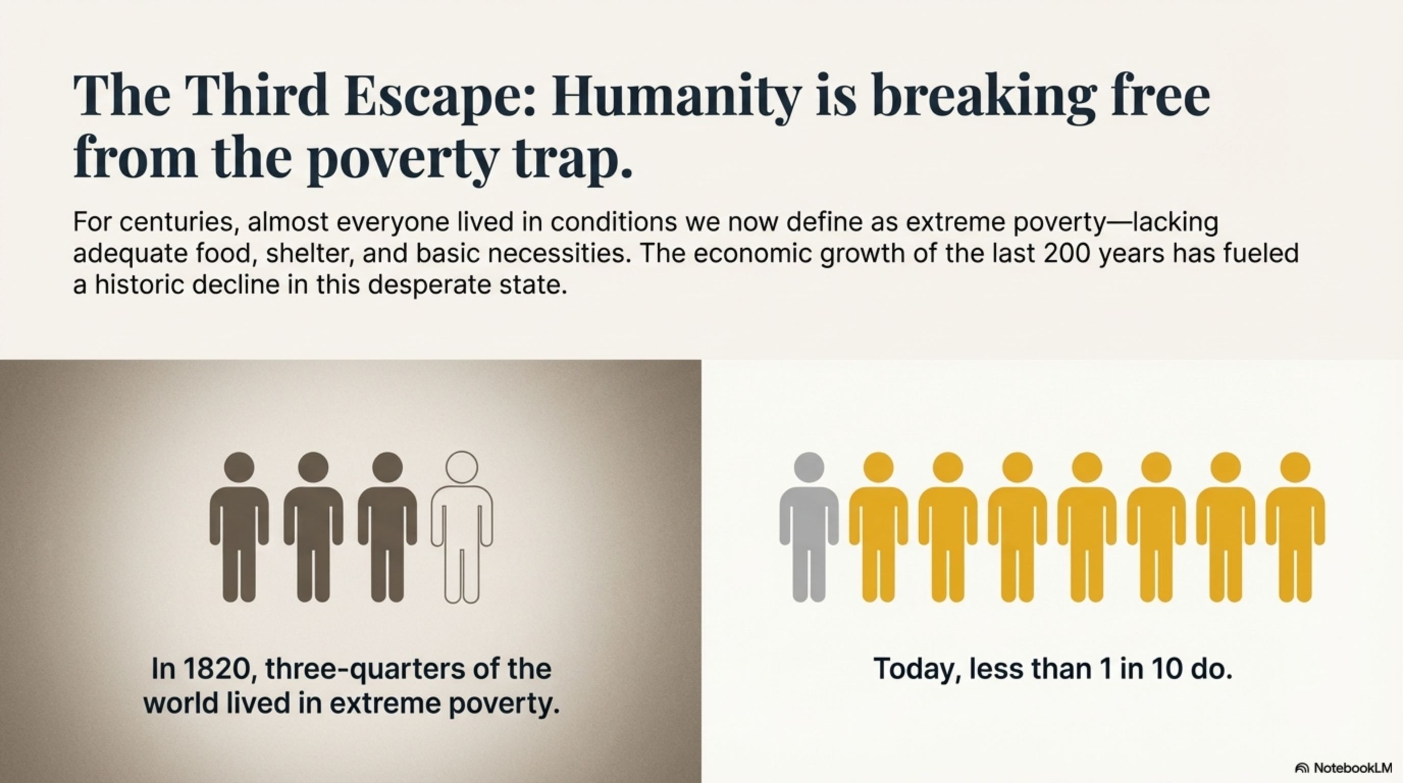 For millennia, the global economy was a fixed pie. One person's gain was almost always another's loss, and growth was negligible. The modern era is defined by productivity growth driven by technology, global trade, and the spread of knowledge. This created a positive-sum world where shared progress became possible for the first time.