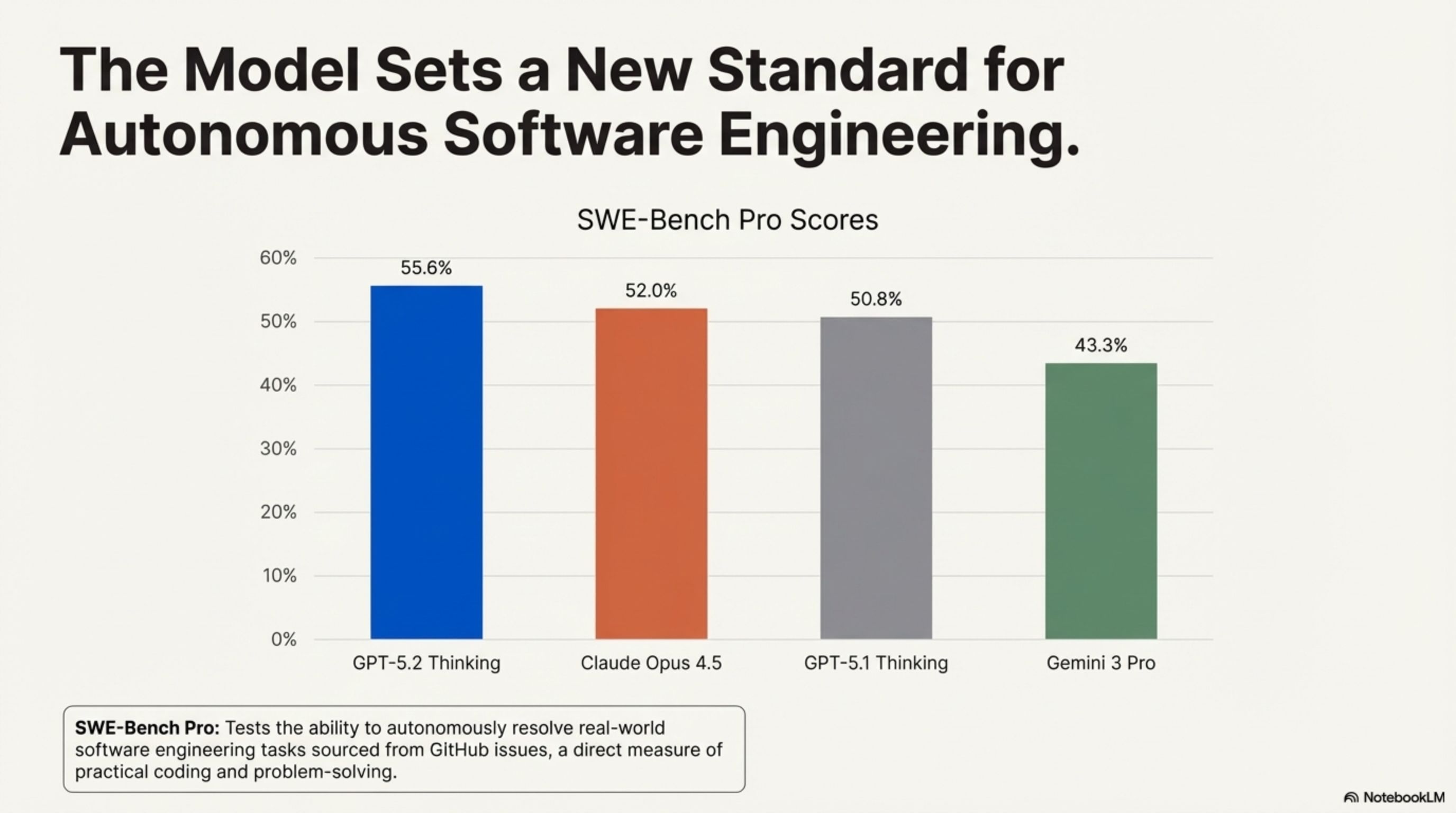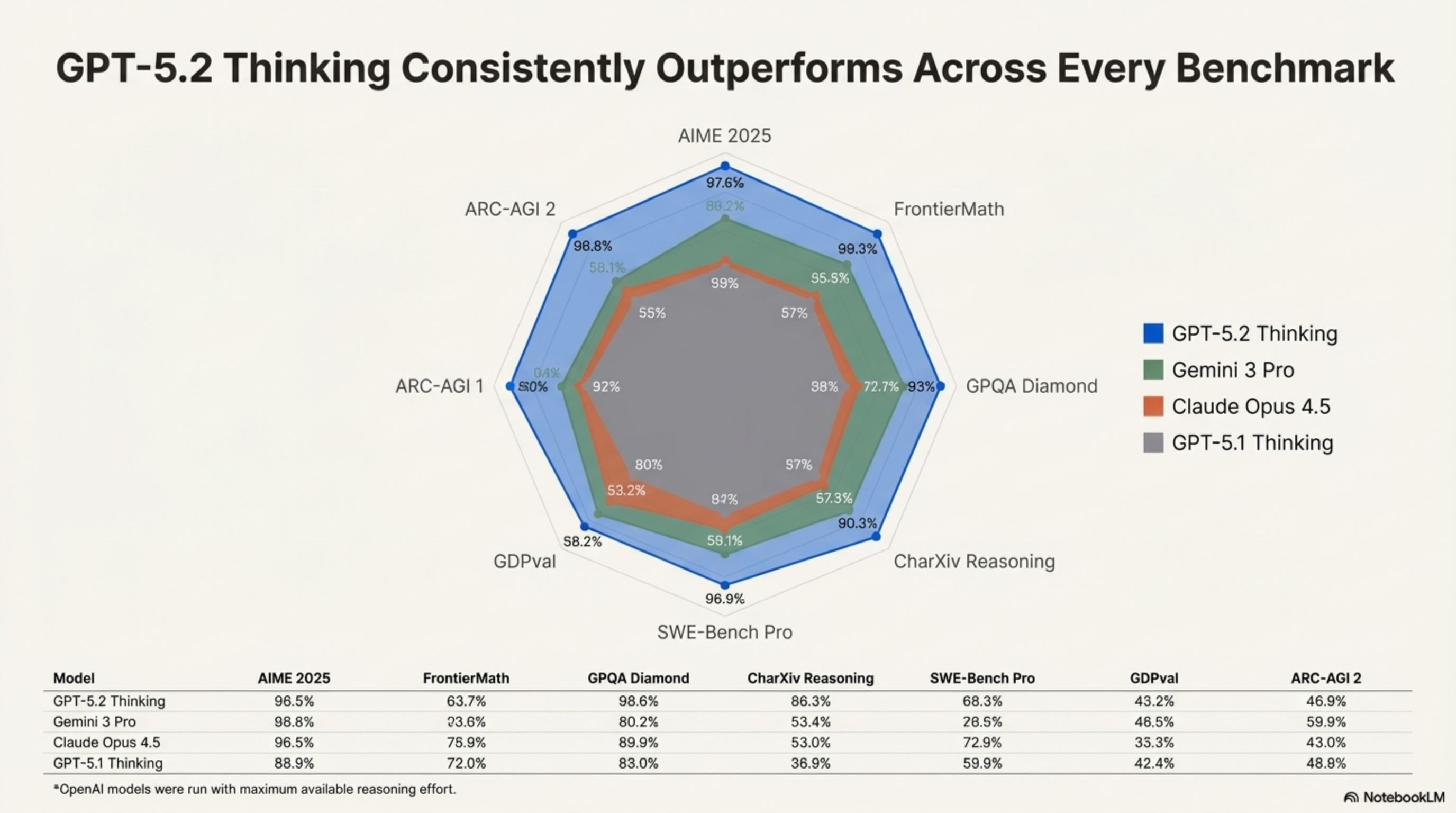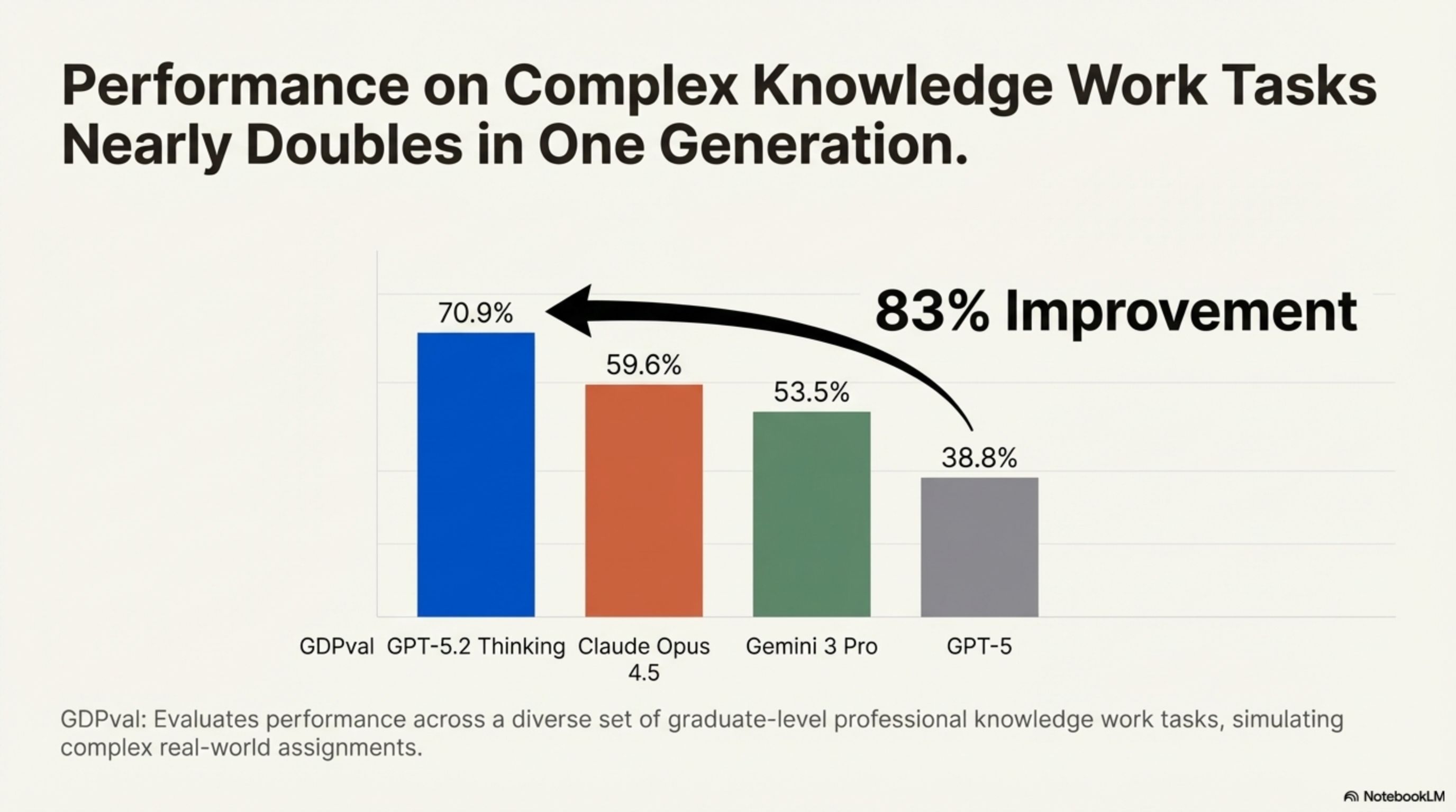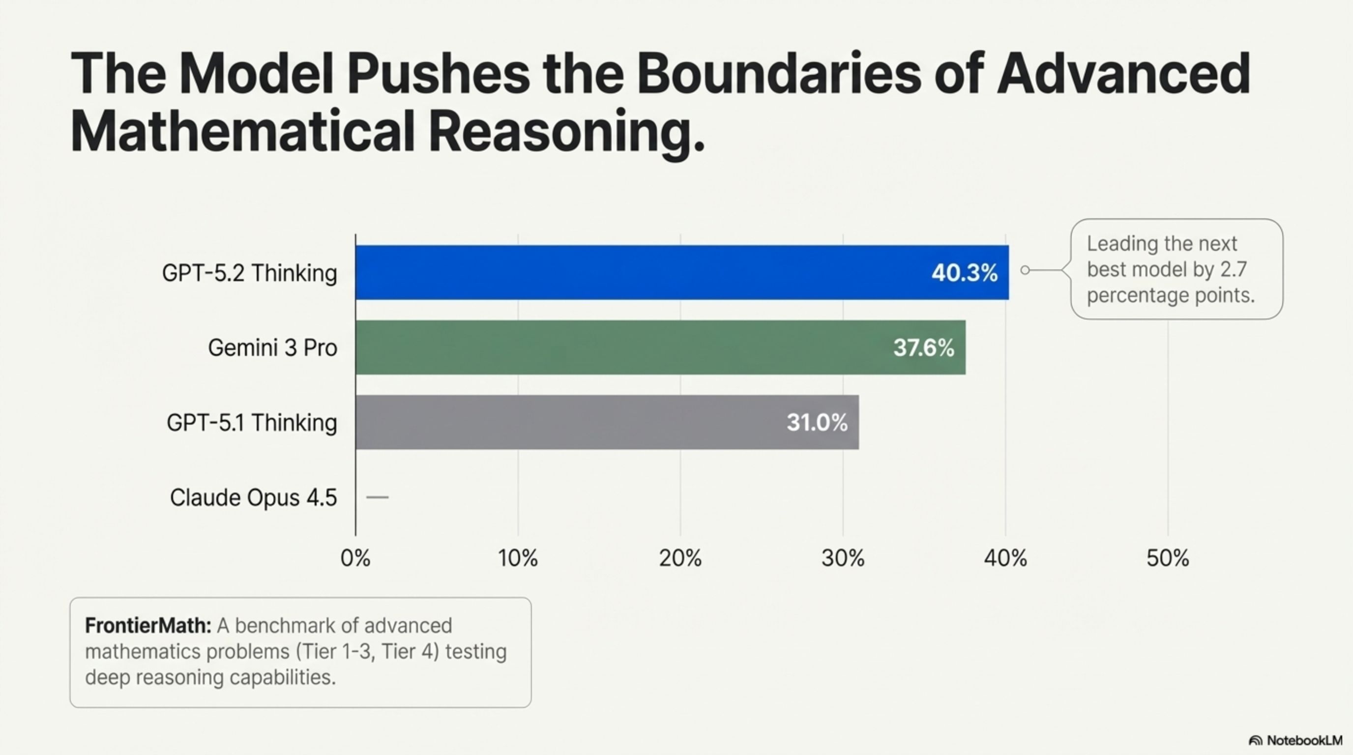 GPT-5.2 Thinking's performance redefines the state-of-the-art in artificial intelligence. Its capabilities demonstrate a new level of proficiency in areas critical for scientific and technological progress.